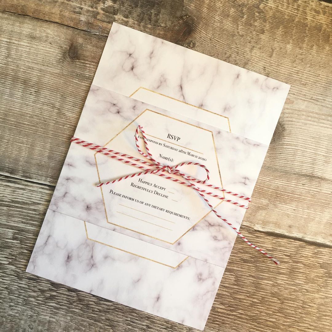 With full marble and a geometric gold foil effect frame, this design definitely makes a statement.